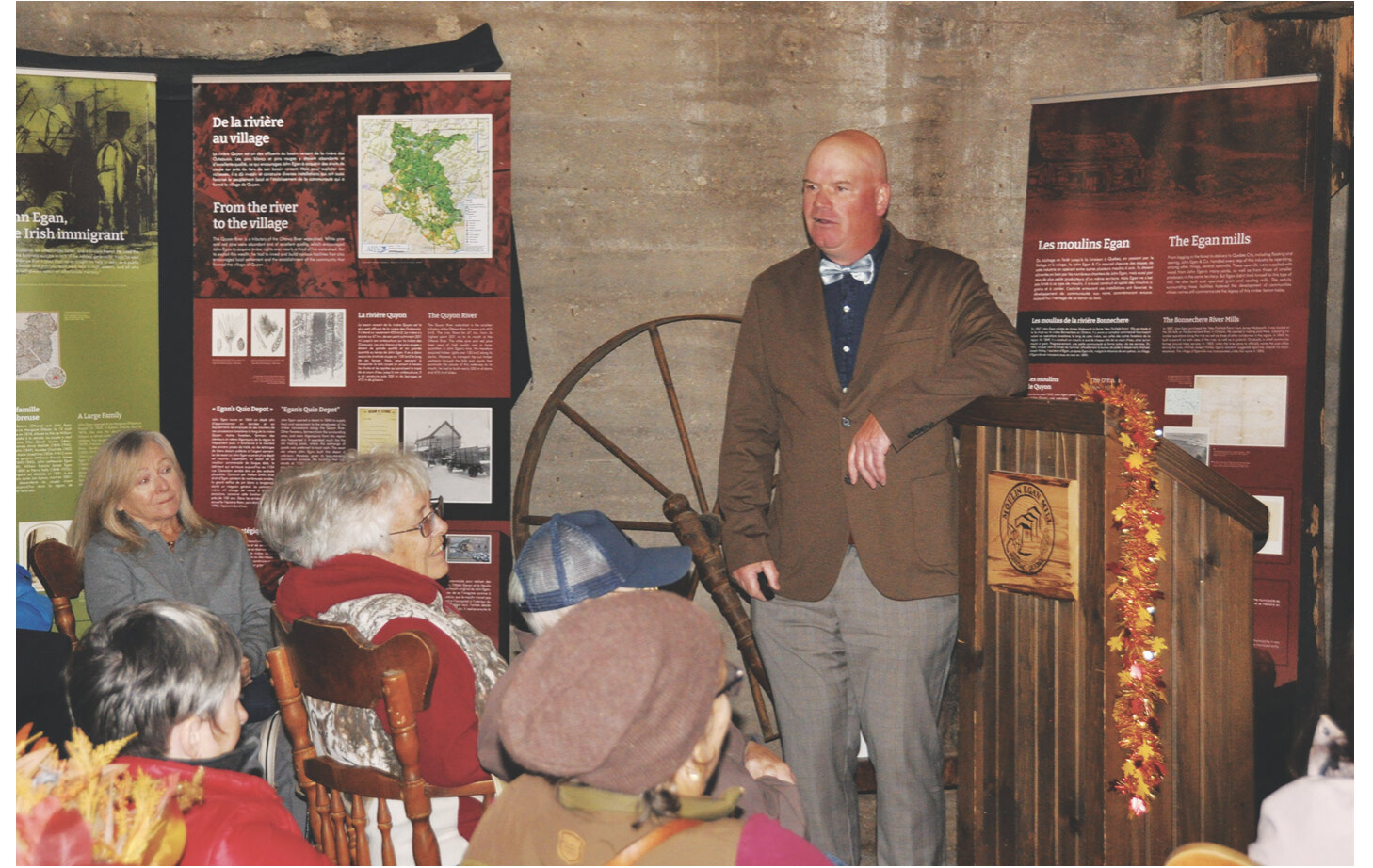 Retired history teacher Gord Graham speaks to a full audience at the Egan Mill in Quyon during the RAWQ’S presentation Unanswered Questions of the Pontiac’s First Settlers, held October 18.
